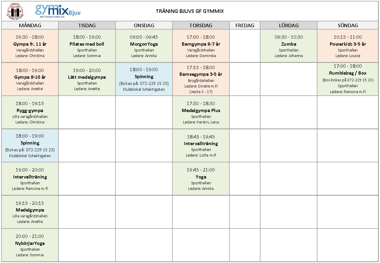 Hjärtligt välkomna till vårterminen 2017 hos Gym mix Bjuv – Bjuvs gymnastikförening! Måndagen den 9 januari kör schemat igång.