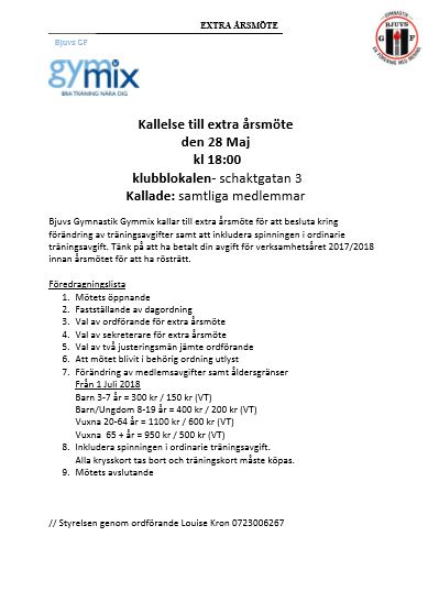 Kallelse Extra årsmöte 28 maj 2018