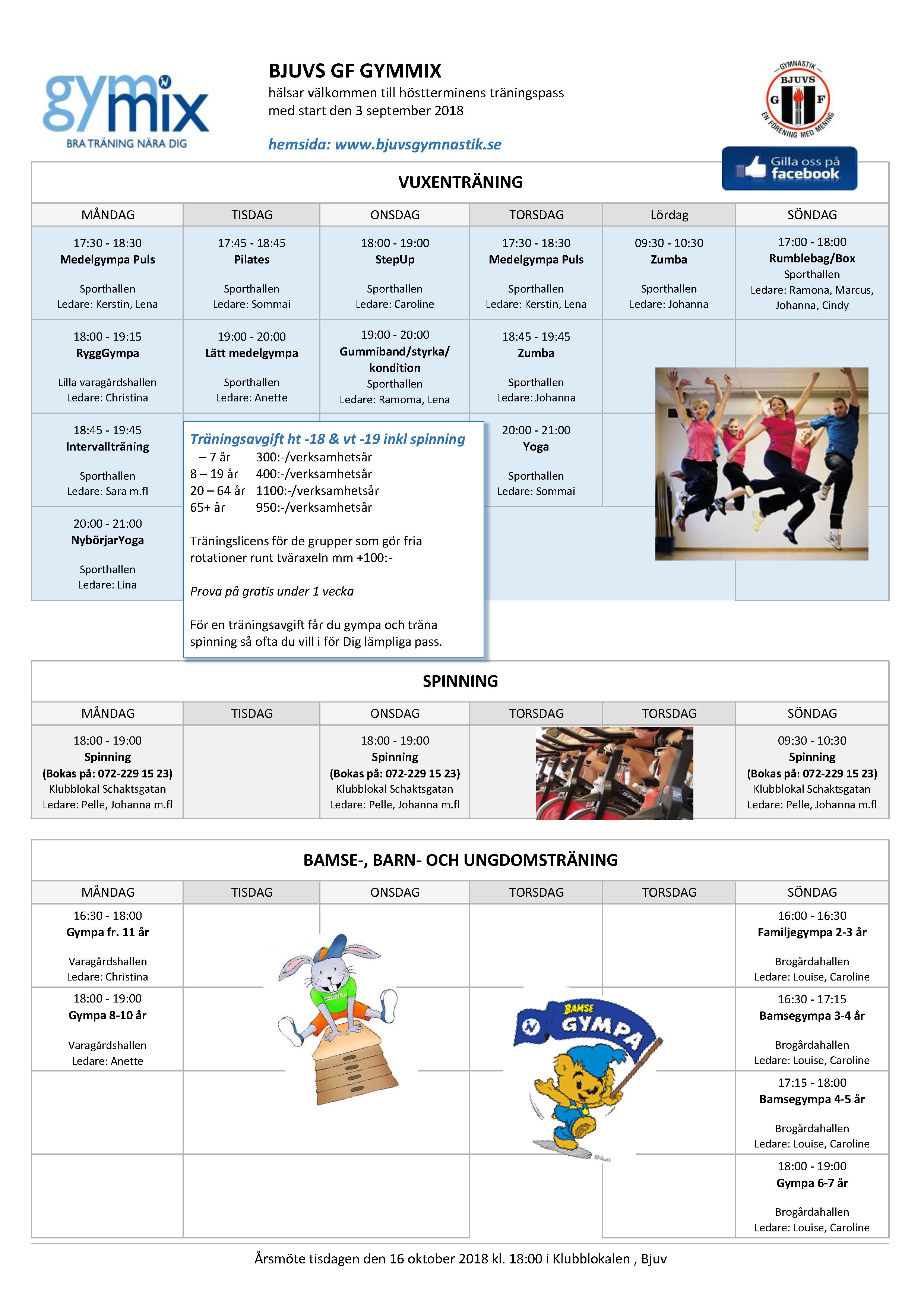 ÄNTLIGEN!! Vecka 36 börjar vår ordinarie träning igen, vi erbjuder träning för alla åldrar och nytt för denna terminen är att spinningen nu är inkluderad i träningsavgiften. Höstens schema publiceras vecka 34 på hemsida och Facebook så håll utkik!